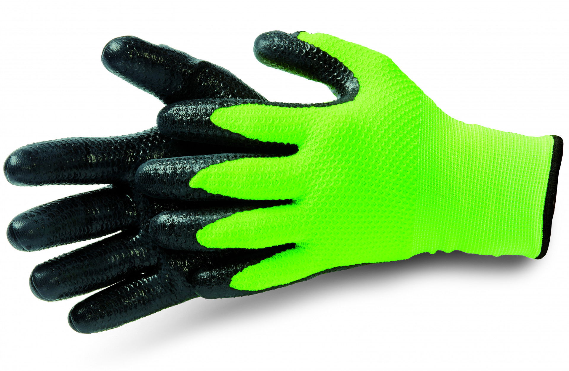 • Univerzális kesztyű elasztikus finomkötött anyagú béléssel és sima, méhsejt formájú nitril bevonattal.