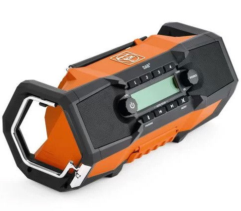 - Mindenütt jól szól: a négy lejátszási forrás (DAB+, Bluetooth®, FM és AUX), az akkumulátorral és hálózati árammal való működés, valamint a függőleges és vízszintes elhelyezéshez szükséges eszközök sokoldalú alkalmazási lehetőségeket biztosítanak. Egyszerűen jól szól minden munkahelyen.