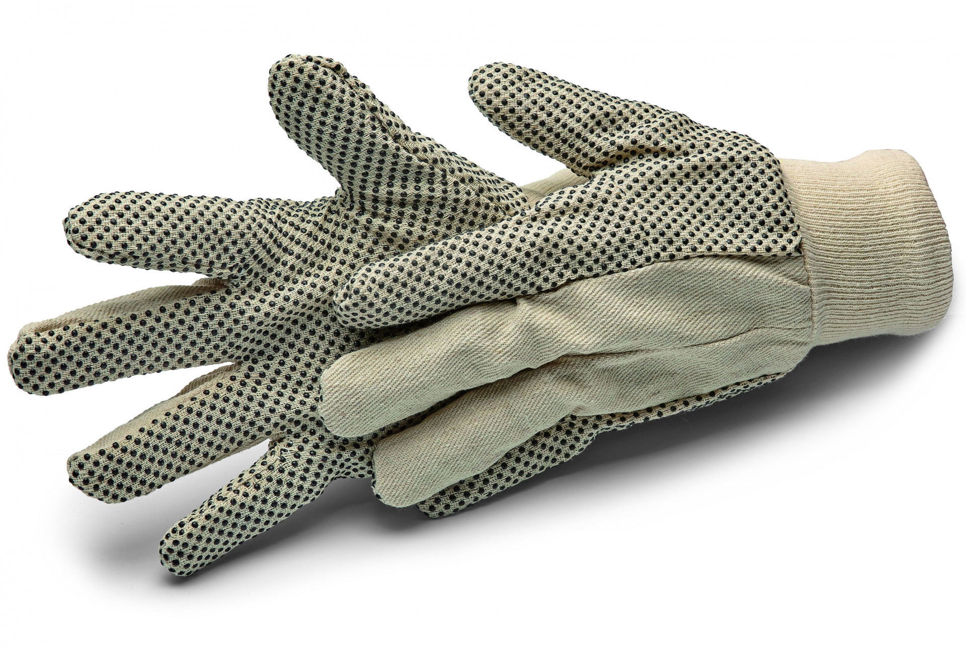 - Pamut kerti kesztyű kötött pánttal és PVC pettyekkel a tenyér oldalon.